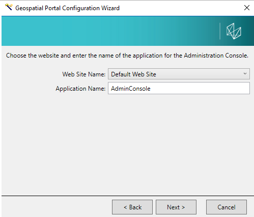 Choose the Web site, and then enter the name of the application for the Administration Console.