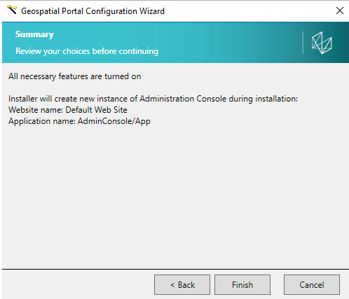 Wizard checks if the license for Geospatial Portal is available. If a valid license was not found click Configure License to activate your license. See Licensing Geospatial Portal for more information.